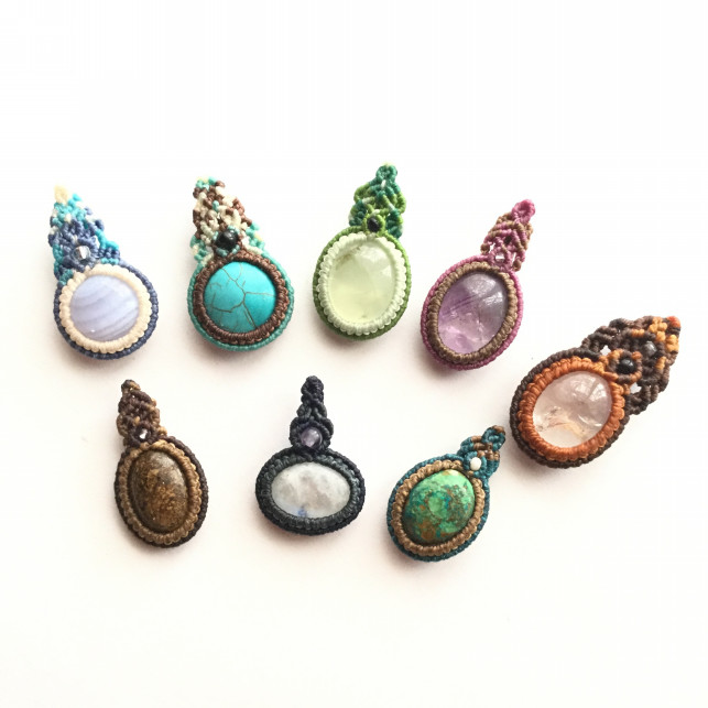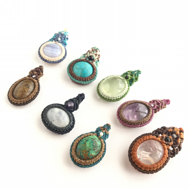 「より紐器」を買ってから 首紐を編むのが億劫じゃなくなったので、小さい石でマクラメペンダントを編むブームがやってきています。