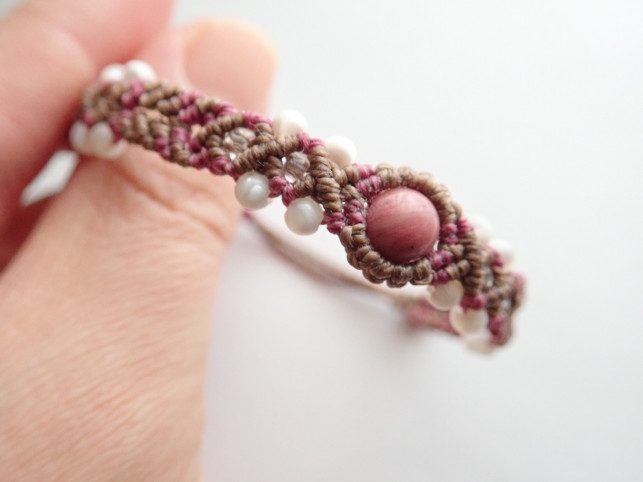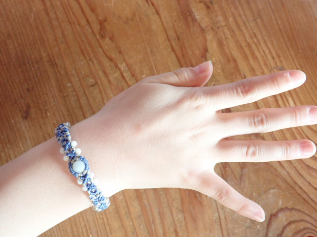 一見ブレスレットは簡単そうですが、紐の入れ替えが複雑で中々編みごたえのある作品でした。