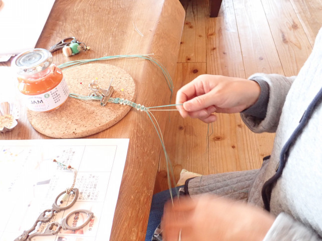 「巻き結び分からない」 とか 「ビーズ通らない」 とか 悪戦苦闘です。