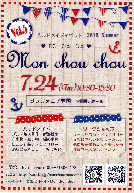 次は 7月24日(火)シンフォニア岩国である「モンシュシュ」に出店予定です。